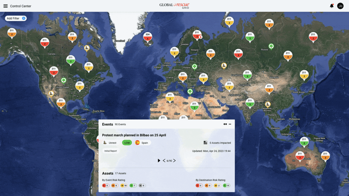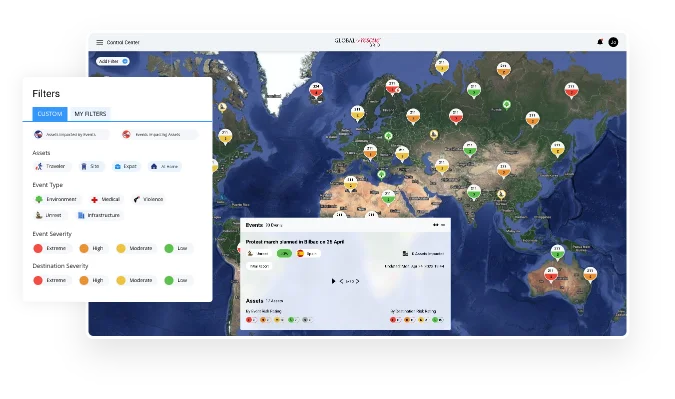 An advanced control center provides near-to-real-time global event updates customized to the needs of your traveling workforce.